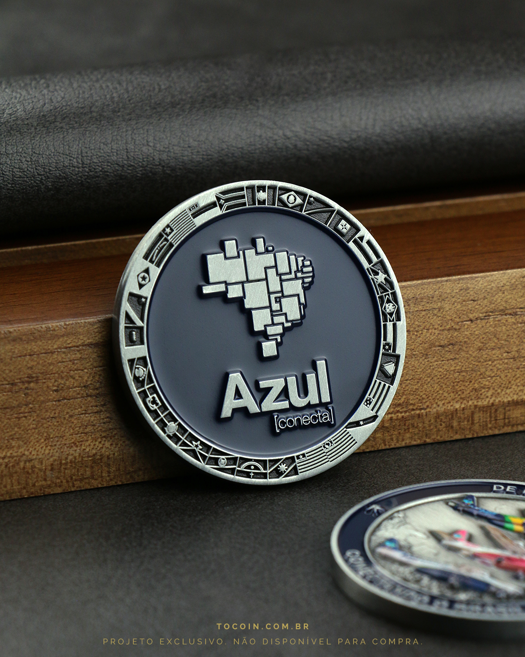 A moeda personalizada da Azul Conecta é um símbolo do sucesso da operação e da importância de cada colaborador, parceiro e cliente que faz parte dessa trajetória. A peça foi concebida com um design exclusivo, destacando os elementos icônicos da companhia e sua missão de conectar o Brasil de ponta a ponta. Cada detalhe foi pensado para transmitir a grandiosidade desse marco, reforçando o valor e a importância da Azul Conecta no setor aéreo.